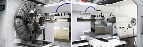 Boyuna ve enine beslemeler bilyalı vidalarla tahrik edilen servo motorlar tarafından gerçekleştirilir. Ø130mm mil deliği, yüksek hassasiyet ve rijitlik için kısa konik konumlandırma mil burnu.